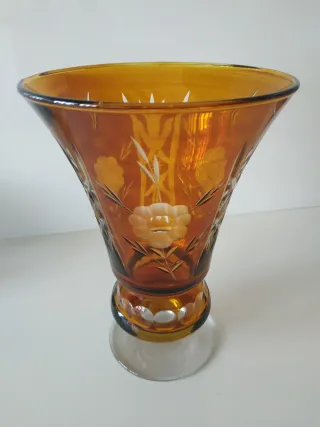 NO MOLESTAR CON DESCUENTOS. RECOGER EN PERSONA 75€. Jarrón vintage cristal bohemia ambar tallado a muela sin faltas. Siempre expuesto en vitrina. Destaca por su vistosidad y transparencias en cualquier lugar donde se ponga. Medidas: alto 22,5 cm boca 15,5 cm. Más artículos inusuales. Porcelana Limoges, Capeans, Vargas Segovia, Wedgwood, Káiser, Rosenthal, La Cartuja de Sevilla, figuras Lladró, Nao, Nadal, Josep Bofill, Robert Pleffer, Rakoto, Pedro Borja cubismo, Murano, WMF, lámparas esmaltadas, Fase, flexos, sillas danesas Skaraborg