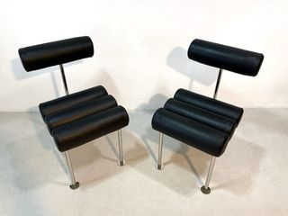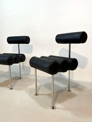 Conjunto sillas diseño acero y piel. ** DISPONIBLE ALQUILER ** TRANSPORTE DISPONIBLE # Stua Vitra Herman Miller Knoll Cassina Fritz Hansen Eames Bauhaus USM Haller Le Corbusier Eileen Grey Cesca Zara Home Andreu World Mies van der Rohe Togo Camaleonda Vitra Vintage Midcentury Maison du Monde Flos Industrial Retro Publi Antiguo Antigua Alquiler Atrezzo Space Age