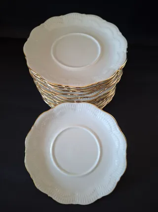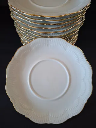 Lote de 15 platos de 17 cm. Porcelana alemana. Años 70. Filos de oro. Nuevos, sin estrenar. antiguo antigua antigüedades arcopal brocante mueble mobiliario mimbre bambú ratán fibra cerámica slow colonial contraste hand made artesanal latón duralex lámpara espejo opalina madera colonial atrezzo boho chic metalarte shabby sol murano manises marco modernista cuadro porcelana industrial oro plata de ley dorado cuadro arte interiorismo silla entrada consola retro vintage moderno campo rural playa