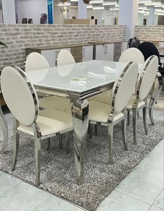 Comedor Mesa + 6 Sillas Lujo Blanco/Plata