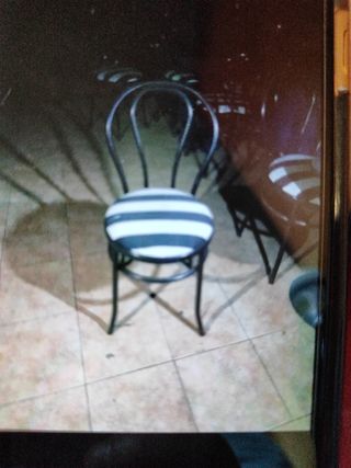 Silla metálica negra, alcolchada tapicería de rayas negras y blancas. Se venden en muy buen estado