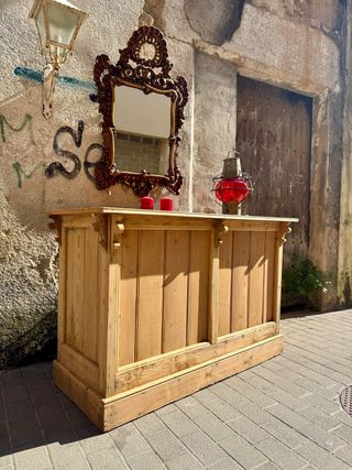 hacemos envios Tienda Anticmaníac Extraordinario mostrador de tienda restaurado con la técnica de la “madera lavada”. Original Antiguo, principios siglo 20 Procedencia: tienda del Pirineo Aragonés. Madera Maciza Totalmente funcional. Medidas: Largo 246. ancho 62. altura 90 mesita centro estritorio antic oficina granja masia silla mostrador tienda bar restaurante ropa hotel comedor cocina terraza porche jardin hierro francesa madera maciza mueble auxiliar alacena retro vintage ropa silla cafeteria industrial masia pop bistrot tocinera diseño modernista art-deco rustica banco trabajo aparador expositor despacho camisa