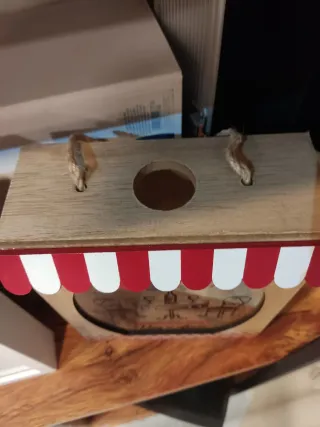 Original cuadro decorativo para coleccionar corchos de vino, con un diseño inspirado en un bistró francés. Medidas: 18x22x7cm - Estructura de madera. - Ventana ovalada para visualizar los corchos. - Decoración con mesa, sillas, botella y copas de vino. - Texto BISTROT y GRANDE BRASSERIE Vin et Amis. - Techo a dos aguas con rayas rojas y blancas.