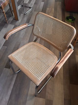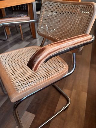 Silla de diseño Cesca con reposabrazos. - Estructura de metal. - Asiento y respaldo de madera. En una de las fotos veréis que falta un tornillo. #sillas