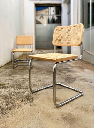 Silla tipo Cesca, inspiradas en el diseño de Marcel Breuer de 1928. Edición Italiana contemporánea. Diseño clásico y atemporal. PRECIO UNIDAD. VARIAS UNIDADES DISPONIBLES. Rejillas nuevas, madera color natural y estructuras cromadas en perfecto estado. Nuestros productos son recuperados y pueden presentar algún defecto o desgaste por el uso o por el paso del tiempo. Siguenos en Instagram @Elguatequebcn19