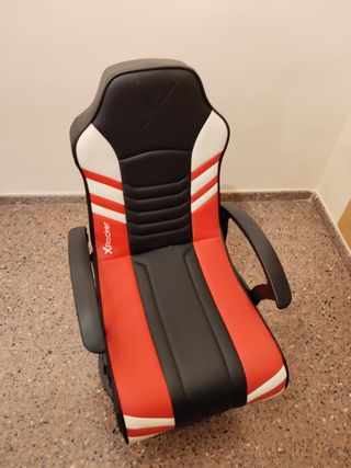 Silla gamer X Rocker con diseño deportivo y altavoces integrados. - Tapicería de piel sintética. - Combinación de colores negro y rojo. - Reposabrazos acolchados.