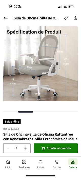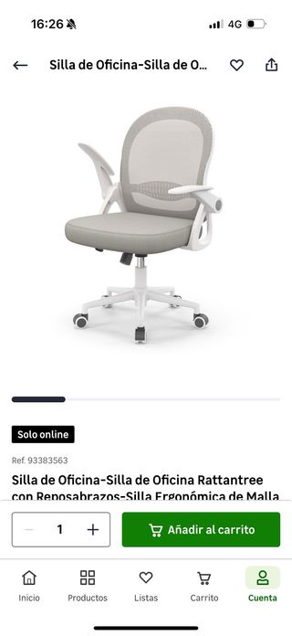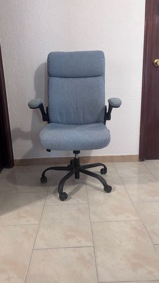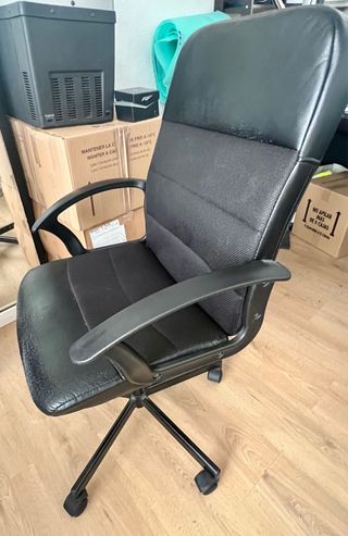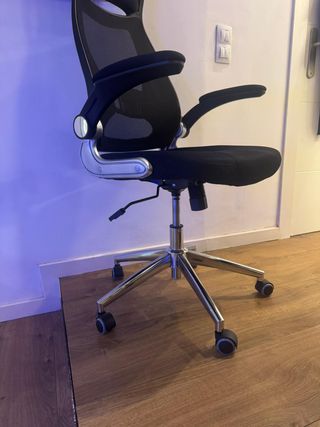 Silla de oficina ergonómica con reposabrazos, ideal para tu espacio de trabajo. - Respaldo de malla transpirable. - Asiento acolchado. - Reposabrazos abatibles. * Comprado en Leroy Merlin por 69,99€ NO USADO Puedes venir a verla sin compromiso.
