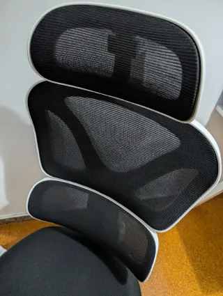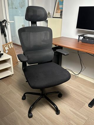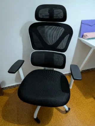 Silla de oficina ergonómica Kerdom 9070F – Un año de uso esporádico en muy buen estado. Respaldo en forma de Y y reposacabezas giratorio (altura + rotación) que ofrecen muy buen apoyo lumbar y cervical. El respaldo ensanchado se adapta bien a la espalda y ayuda a mantener una postura correcta evitando dolores. Incluye: *Reposacabezas multidireccional *Reposabrazos ajustables 3D *Altura regulable y giro 360° *Inclinación con bloqueo hasta 120° *Asiento y respaldo de malla transpirable (evita sudor y calor) *Cojín de espuma de alta densidad, cómodo y firme *Ruedas de goma para no rayar el parquet. Precio en Amazon 209€