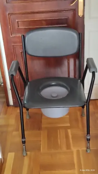 Silla inodoro ortopédica 100% nueva, sin uso. Se compró en ortopedia en septiembre de 2025 y no se ha llegado a utilizar. Se vende porque finalmente no fue necesaria. ✔ Incluye ticket de compra ✔ Todavía le quedan aproximadamente 2 años y medio de garantía Características: • Estructura metálica muy resistente • Asiento acolchado cómodo • Reposabrazos para mayor seguridad • Respaldo ergonómico • Cubo extraíble con tapa para fácil limpieza • 4 ruedas para moverla fácilmente Ideal para personas mayores, recuperación tras operación o personas con movilidad reducida. Costó 148,50 € en ortopedia. NUEVA