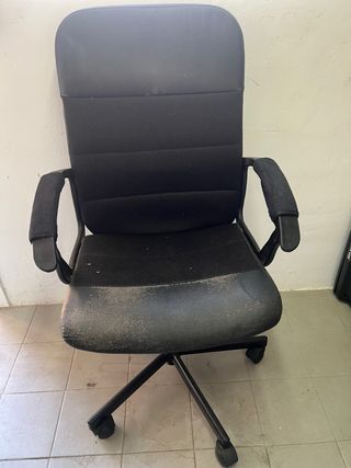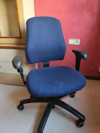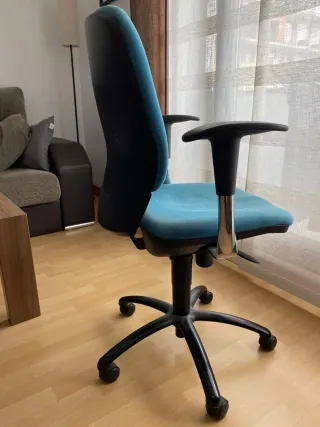 Silla de oficina ergonómica con un diseño moderno. Tengo 2 una por 50€, y dos por 90€. - Asiento y respaldo tapizados en tela. - Reposabrazos de plástico. - Base metálica con ruedas.