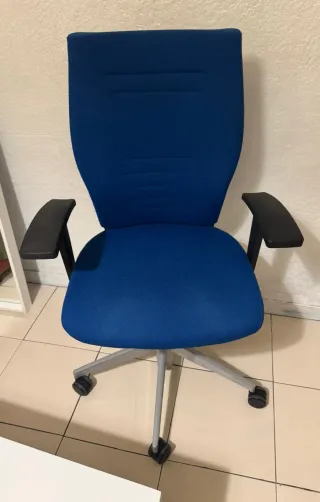 Silla de despacho profesional en perfecto estado, casi nueva. Diseñada para ofrecer comodidad y soporte durante largas jornadas de trabajo. - Base con ruedas para fácil movilidad. - Reposabrazos ergonómicos. - Respaldo y asiento acolchados.