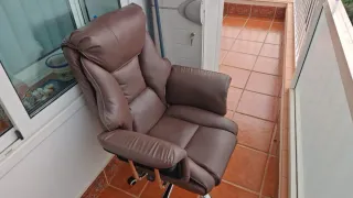 Silla giratoria de piel, con reposacabezas, reposabrazos y ruedas, muy cómoda para estar todo el tiempo necesario