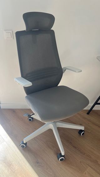 Silla de escritorio ergonómica en excelente estado, casi nueva. Diseñada para ofrecer comodidad y soporte durante largas jornadas. - Respaldo y asiento con malla transpirable. - Reposacabezas ajustable. - Reposabrazos acolchados. - Base con ruedas para fácil movilidad.