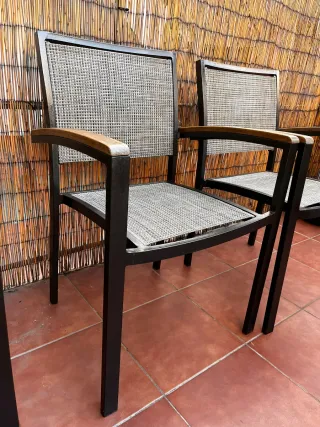 4 Sillas de exterior metal, madera y tela