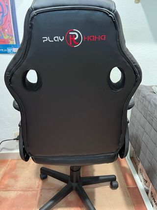 Silla de gaming GTPLAYER en acabado sintético. - Reposapiés integrado. - Diseño ergonómico. Incluye altavoces integrados, cojín lumbar y reposapiés extensible. Es cómoda y resistente. Ruedas y mecanismos funcionan perfectamente. Único detalle: desgaste y pequeñas grietas en el cuero de los reposabrazos (ver fotos). Por lo demás, está en perfecto estado.