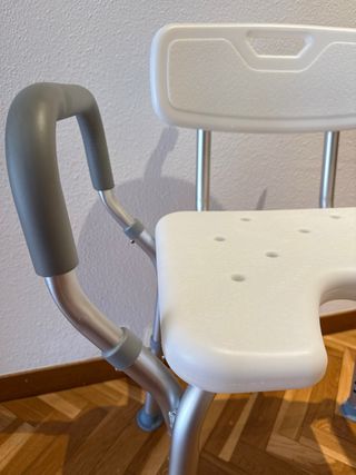 ✅️ PRODUCTO NUEVO ✅️ CAJA PRECINTADA ✅️ LO ESTRENAS TU. Silla de ducha con reposabrazos y respaldo para mayor comodidad y seguridad. Patas antideslizantes. - Asiento con diseño antideslizante. - Patas ajustables en altura. - Reposabrazos acolchados. - Respaldo ergonómico.