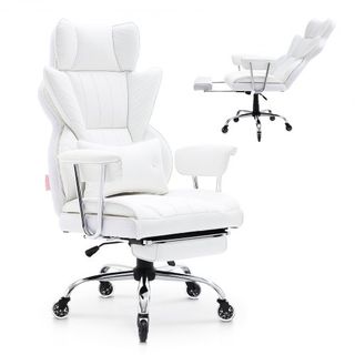 Silla de Oficina Reclinable con Reposapiés, Cuero PU de Alta Resistencia, diseño Ejecutivo Grande y Alto con Soporte Lumbar. Ergonómica, con reposapiés oculto y extensible. Dimensiones: Ancho del Asiento: 600 mm, Ajuste de Altura: 0-80 mm, Tamaño del Producto: 740 x 740 x 1270 mm, Grosor del Cojín: 120 mm, Material de las Ruedas: PU. Reposabrazos: Fijo, Desmontable, Tamaño: 360 x 110 mm. Capacidad de Peso: 350 lbs, Peso del Producto: 23.6 kg. Respaldo: 33.8 x 24 pulgadas, Soporte Lumbar: Ajustable, Material: Cuero PU + Espuma de Alta Resiliencia. Tamaño del Reposapiés: 360 x 200 x 70 mm. Disfruta de una comodidad superior y calidad en la que puedes confiar.