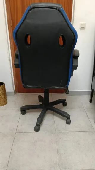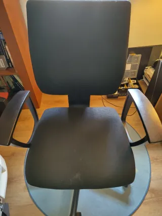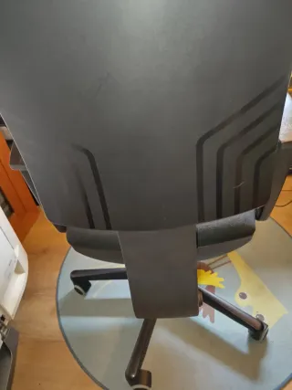 Silla de oficina con un diseño moderno y ergonómico. En buenas condiciones marcas de eso la vendo barato porque me regalaran una nueva por reyes y quiero librar espacio - Respaldo alto. - Reposabrazos. - Base giratoria.