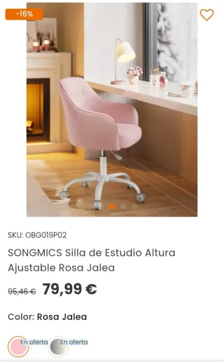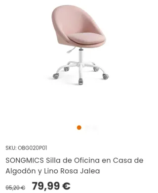 Silla Oficina Giratoria Rosa SONGMICS OBG019P02