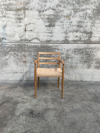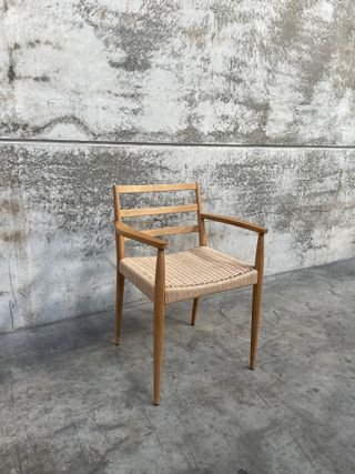 Silla Analy reposabrazos madera maciza de roble acabado natural asiento cuerda FSC 100%