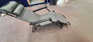 Silla plegable de exterior, ideal para camping o terraza. Se pliega fácilmente para su almacenamiento y transporte. - Dos cojines reposacabezas. - Reposabrazos acolchados. - Estructura metálica. - Asiento y respaldo de tela.