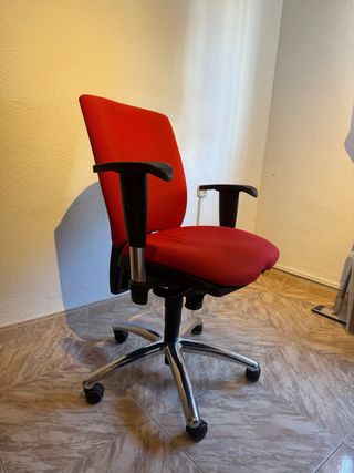 Silla de oficina ergonómica Giroflex 64. Se trata de una silla muy resistente. Está usada pero al ser tan resistente está en buen estado. Características: Asiento regulable en altura, inclinación y profundidad. Respaldo regulable en altura. Sistema syncro. Reposabrazos regulables en altura. Base metálica. El asiento y el respaldo son de una espuma rigida, ya que en un asiento diseñado para adaptarse a la forma del cuerpo no hay necesidad de colocar un cojín mullido