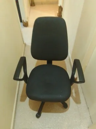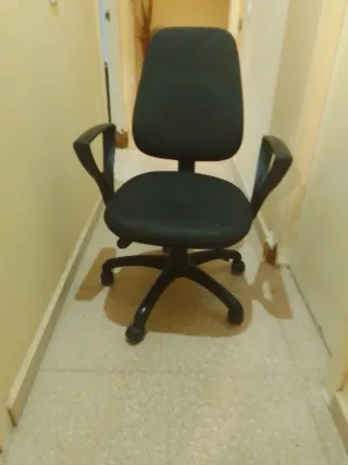 Silla de oficina cómoda y funcional. Recogida en Mairena del Aljarafe (Sevilla). - Tapicería de tela. - Base y estructura de metal. - Reposabrazos de plástico.