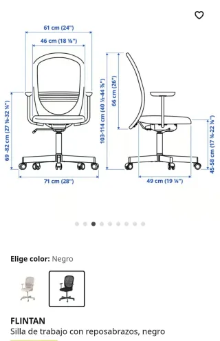 Silla de oficina modelo Flintan de Ikea. - Respaldo de malla transpirable. - Base con ruedas para fácil movilidad. -En muy buenas condiciones, se entrega con su funda original de asiento etc. -Sin reposabrazos.