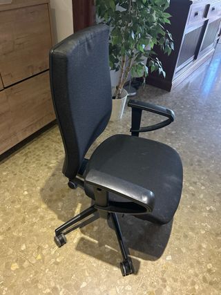 Silla de oficina sin reposabrazos, cómoda, va perfectamente tanto el respaldo como la palanca de regular el asiento para subirlo y bajarlo. Está un poco desgastada la tapicería y con alguna mancha que no se va, pero se le pone una funda y perfecto. La vendo porque tengo otra. Solo entrego en mano, a recoger en Sevilla.