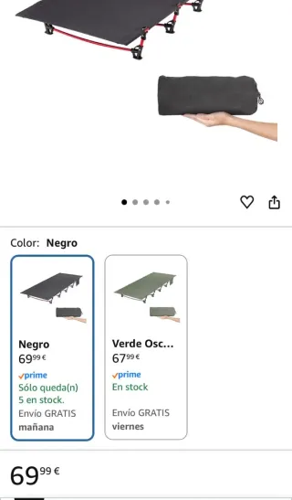 Cama plegable Mopaicot Furn, ideal para camping o como cama extra - Estructura metálica. - Tapicería de tela. - Soporta hasta 200 kg. - Apta para interiores y exteriores. -Tengo 3 unidades
