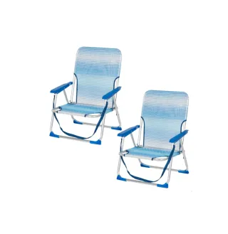 AKTIVE Pack 2 sillas Playa Plegables, 44x40x72 cm, Azul a Rayas, Altura Asiento 23 cm, Estructura Aluminio, Tejido textileno, Topes antivuelco, Asa de Hombro, Soporta 110 kg, Jardín y Camping (85490). Marca AKTIVE Color Celeste Material Metal, Plástico Dimensiones del producto 40f. x 44an. x 72al. centímetros Tamaño44x40x72 cm Peso del producto4,34 Kilogramos