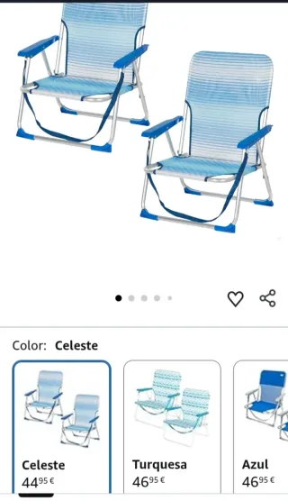 Pack 2 Sillas Plegables Turquesa reclinable