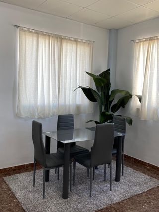 Vendo conjunto de mesa y dos sillas a juego, ideal para cocinas pequeñas, estudios o apartamentos. combinación de colores muy llamativa y moderna. Detalles del conjunto: • Mesa: Estructura metálica en color gris plata con superficie de cristal templado en color berenjena/morado. Muy resistente y fácil de limpiar. • Sillas (2 unidades): Estructura metálica a juego con el asiento tapizado en el mismo tono morado que la mesa. Son ligeras pero robustas. • Estado: En muy buen estado, bien cuidada y lista para usar. • Diseño: Estilo minimalista que aporta un toque de color y alegría a la cocina. 📍 Disponible para recoger en Casetas.