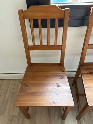 Conjunto de 4 sillas de madera maciza de Ikea. Están en buen estado y son robustas. - Diseño clásico con respaldo en forma de X Tanto para cocina como comedor.