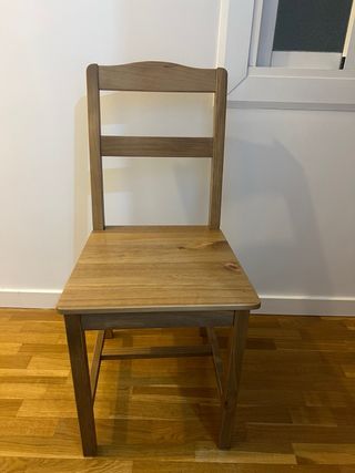 Se venden 4 sillas IKEA modelo BÖRJE en muy buen estado. Son sillas robustas, cómodas y estables, fabricadas en madera maciza, ideales para comedor, cocina o despacho. Presentan un diseño sencillo y elegante que combina fácilmente con cualquier estilo de hogar. Han sido bien cuidadas y conservadas, sin golpes ni desperfectos estructurales. El único detalle es que no incluyen funda, lo que supone una ventaja para personalizarlas con el color o tejido que prefieras. Se venden juntas, perfectas para renovar tu espacio sin gastar de más. El precio es de 20€ cada silla. Oportunidad única. Me quedan 2 sillas!