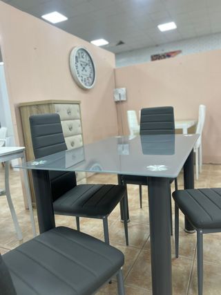 Mesa de cocina cristal y 4 sillas metal