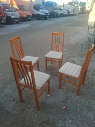 Se venden seis sillas de comedor de madera maciza. Son robustas y están en buen estado. - Ideales para cualquier comedor. - Diseño clásico y elegante. - Perfectas para uso diario. Se venden juntas