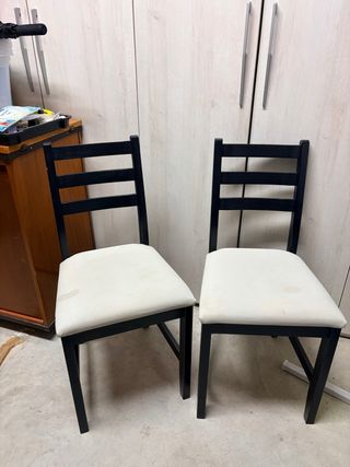 Pack de 3 sillas IKEA NÄSINGE silla en buen estado. Son sillas de comedor de madera con asiento acolchado, cómodas y resistentes, con diseño clásico y atemporal. Se han usado pero están bien cuidadas y en buen estado general. Importante: las 3 sillas son del mismo modelo pero en tonos diferentes de madera: • Marrón oscuro • Marrón medio • Marrón claro Esto puede quedar muy bien si te gusta un estilo más natural o combinado. Ideales para comedor, cocina o incluso como sillas auxiliares. - Asientos en color beige. - Estructura en color marrón. Se venden por separado también. 25€ cada una Las Tablas, Madrid 28050 No hago envíos