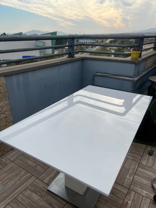 🌟 Mesa de terraza extensible + conjunto de sillas 🌟 ℹ️ Estado general: - Mesa con pequeños rayones del uso - Sillas con desgaste normal - Todo firme y estable, nada cojo, funciona perfectamente ✅ Mesa extensible: se abre fácilmente para ganar espacio cuando tienes invitados ✅ Gran capacidad: perfecta tanto para uso diario como para reuniones ✅ Material resistente: apta para exterior ✅ Diseño moderno y limpio que combina con todo 🪑 Incluye lote de sillas (varias unidades): - Cómodas, con respaldo alto - Estilo moderno en color burdeos - Estructura resistente - Uso normal del tiempo (están un poco usadas).