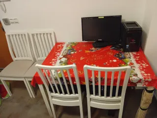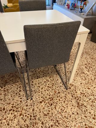Mesa de comedor comprada en Ikea y no se ha hecho uso de ella, las sillas están un poco rasguñadas como se ven en las fotos más que eso todo como nuevo, compra en Valencia!!