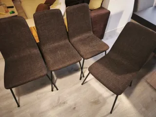 Conjunto de sillas con un diseño moderno y llamativo. Perfectas para añadir un toque de color a tu comedor o espacio de trabajo. - Estructura metálica. - Tapicería de tela.