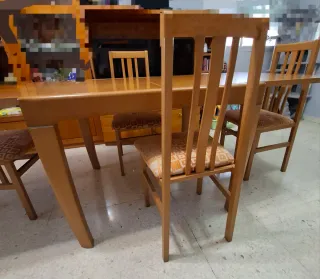 Mesa extensible y 6 sillas de madera
