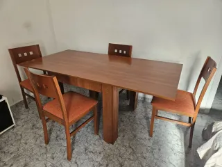 Mesa comedor extensible madera + 4 sillas