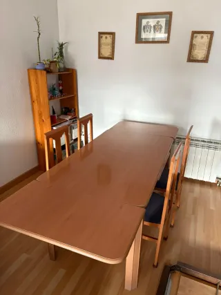 Mesa extensible y 6 sillas de madera