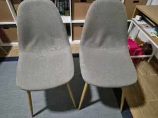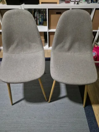Conjunto de dos sillas de comedor o auxiliares. - Diseño moderno y confortable. - Patas de metal y que imitan a la madera. - Tapizado en tela gris - Nueva cuesta 49.99€/silla