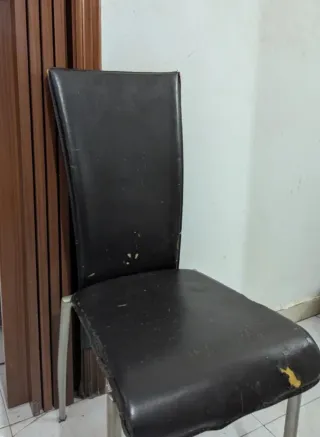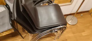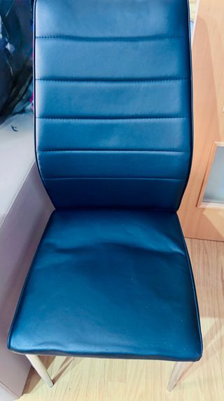 Conjunto de sillas de comedor con un diseño moderno y elegante. - Tapicería cómoda y fácil de limpiar. - Patas de metal resistentes. Tal y como se ven en las fotos, con signos de desgaste. El precio es por las 4. Una bastante desgastada. Transporte a cargo del comprador.
