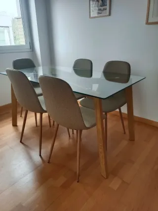 Conjunto mesa de comedor madera cristal y 6 sillas