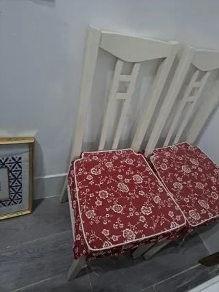 Conjunto de dos sillas de comedor de Ikea. se venden las dos juntas, están en buen estado, la funda original es blanca pero por encima le he puesto la roja que se ve en la foto que quedaba más vistoso, pero de regalo entrego las sillas con un par de fundas blancas originales y un par de fundas rojas adicionales a las que ya están puestas para que las puedas cambiar cuando laves las fundas. nueva cada una cuesta 79€ en las dos serían 158, yo las dejo en 25€las dos, no las vendo por separado, vendo el pack de dos, co las fundas adicionales de regalo, para recoger en Cornellà, no hago envíos