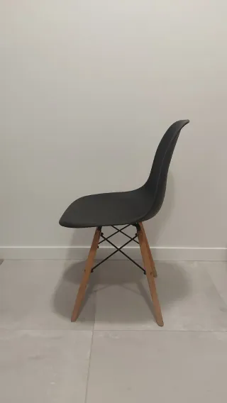 Conjunto de cuatro sillas de comedor con un diseño moderno y funcional. Son cómodas y aportan un toque de estilo a cualquier espacio. Medidas: 47 cm (ancho) × 56 cm (largo) x 81 cm (alto). - Asiento ergonómico. - Patas de madera robustas. - Estructura resistente. - perfecto estado