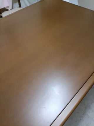 Elegante mesa de comedor, extensible. Madera en color marrón. Muy cuidada, está impecable. Cerrada mide 90 cm ancho x 1,18 largo. Altura 80 cm Abierta completamente llega a 2,35 cm. Solo se vende la mesa, sin sillas